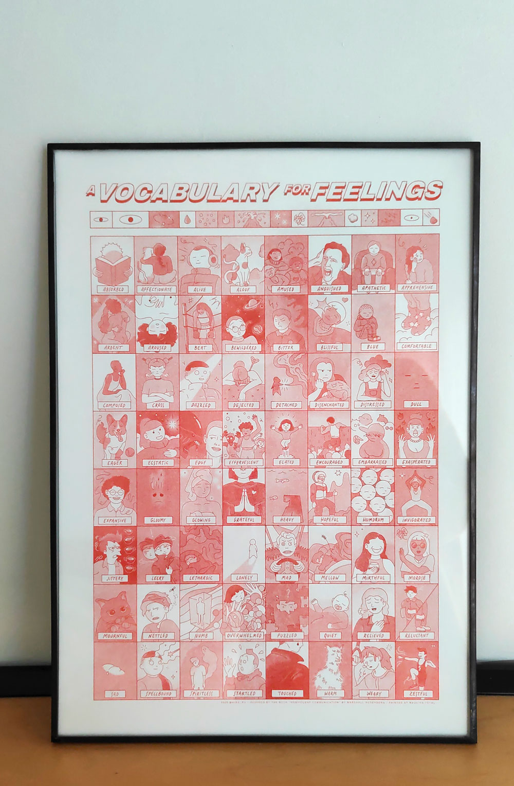 Original art print inspired by the book “Nonviolent Communication” from author Marshall Rosenberg. It is meant as a visual guide to better express our feelings, and therefore improve communication with other people. Limited edition risography in red on paper academia 130g 297 x 420 mm (A3) Printed in 2025. 50 copies numbered