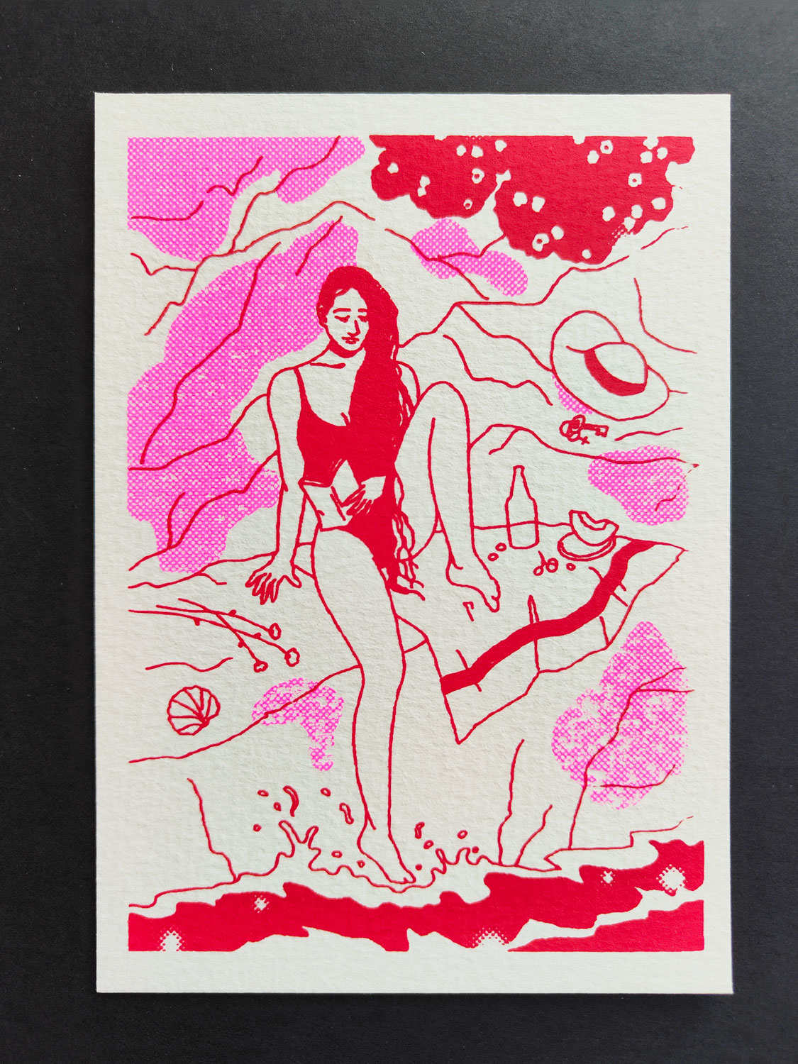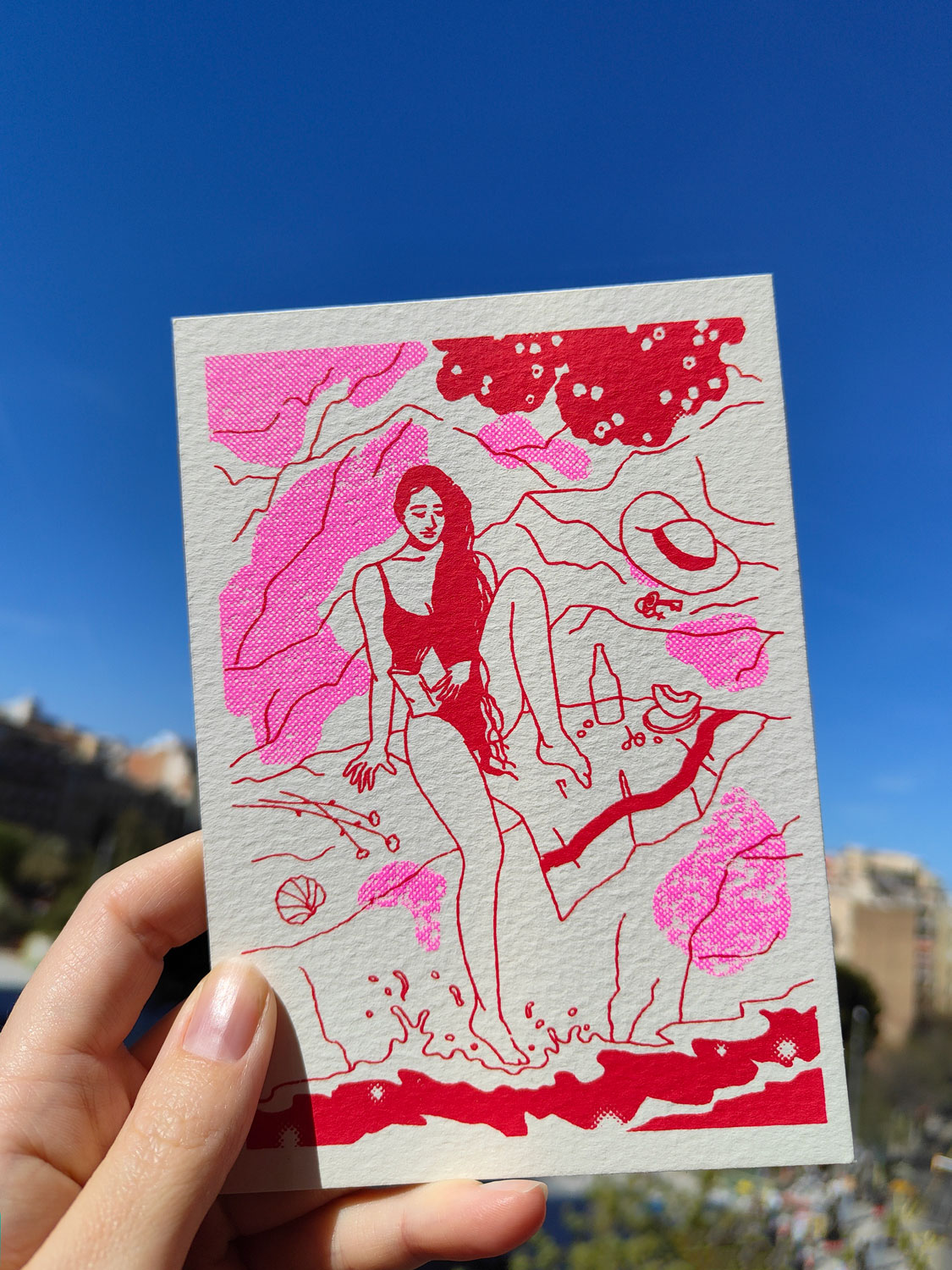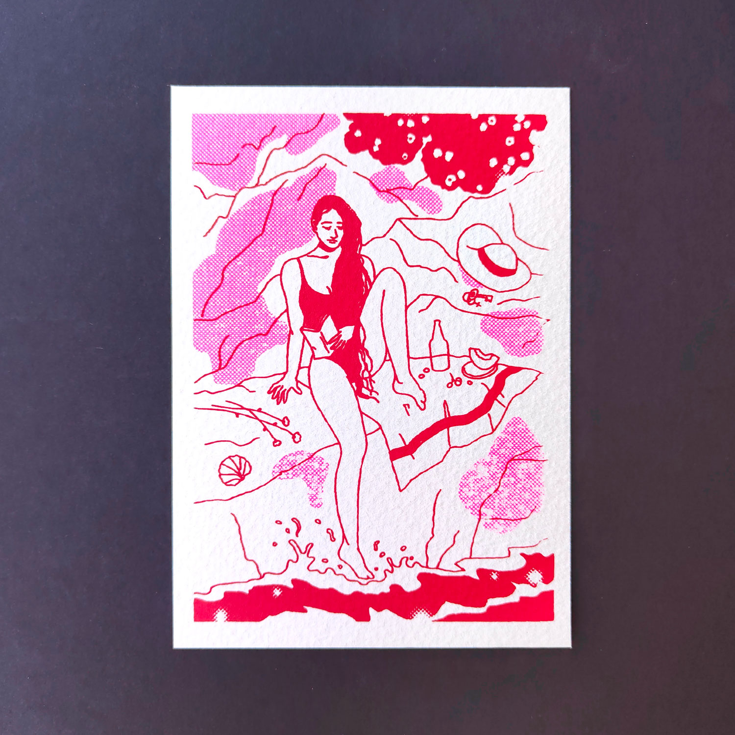 Original art print of Venus manually screen printed in Barcelona. Each copy has slight differences that make them unique. Limited edition serigraphy with two colors, red and fluor-pink on strong paper 300 g /105 x 148 mm (A6) /Edition of 24 copies numbered and signed on the back /Printed in 2026 /Shipps in a hard…